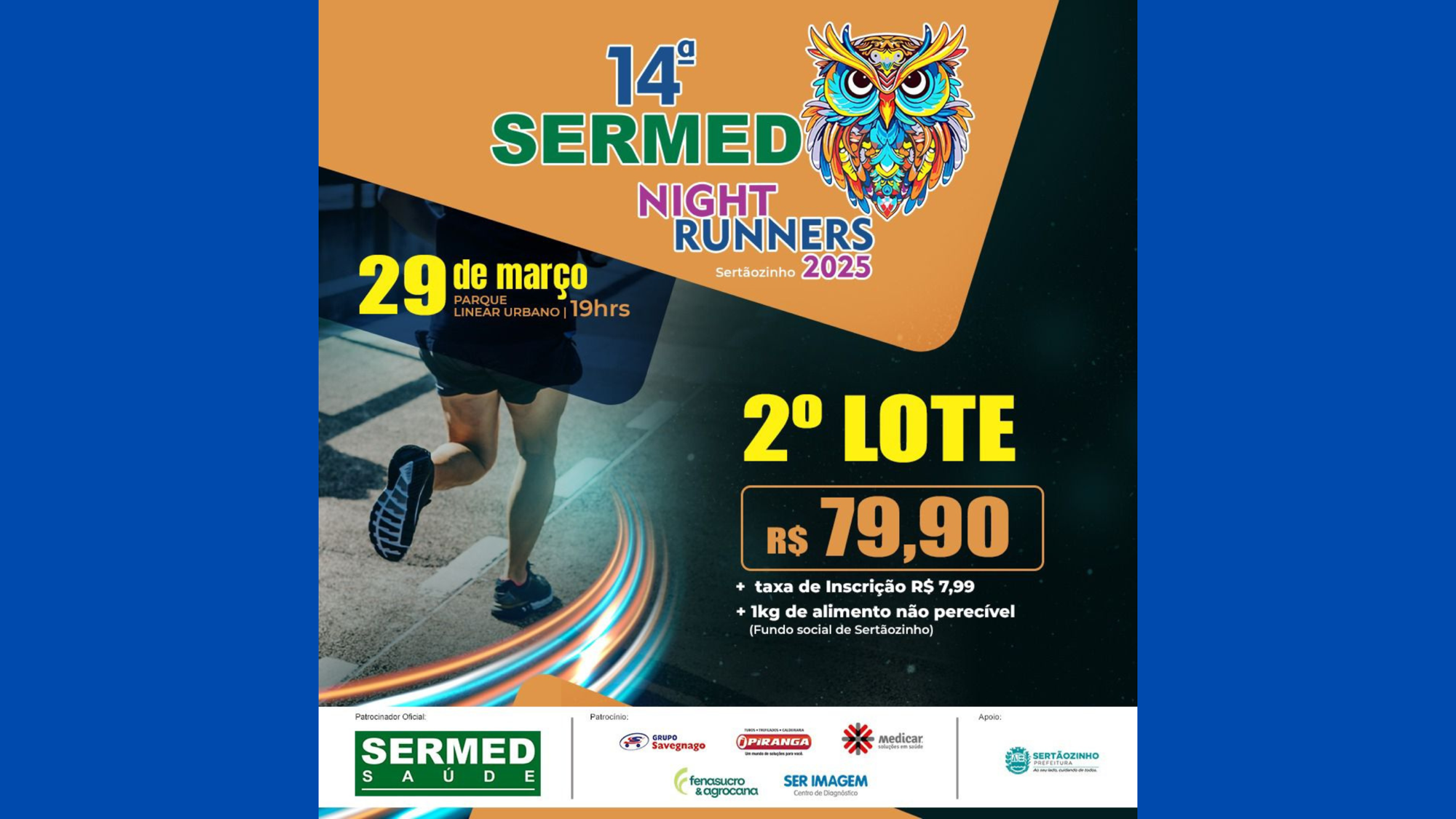 Evento será realizado no dia 29 de março, no Parque Linear Urbano, a partir das 19h